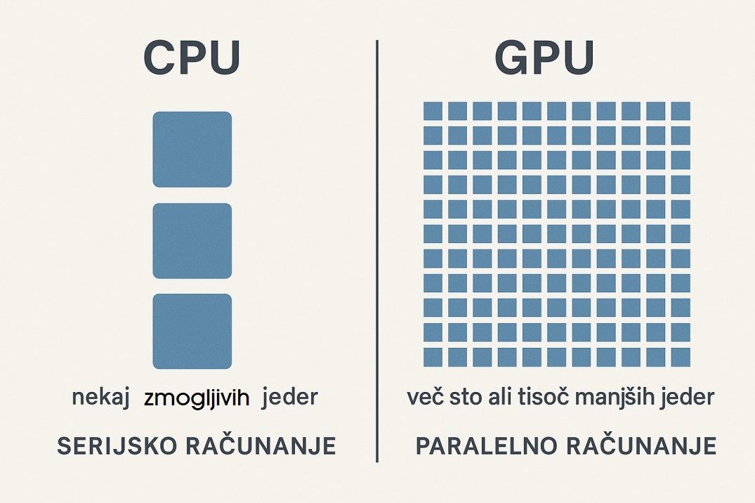 Ravno ta paralelizem omogoča GPU-jem hitro obdelavo velikih količin podatkov – kar je bistveno pri prikazu grafike, videopredelavi in umetni inteligenci. Medtem ko je CPU “možgani” računalnika, je GPU “vizualno srce”, ki poskrbi za slike, video in 3D učinke.