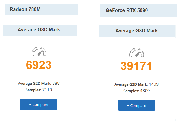 - Najmočnejši integrirana grafična kartica v primerjavi z najmočnejšo ločeno grafično kartico.