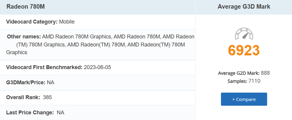- Benchmark ocena 6923 je izredno visoka za integrirane grafične procesorje. Običajno se gibljejo ceno okoli 1000-2000.