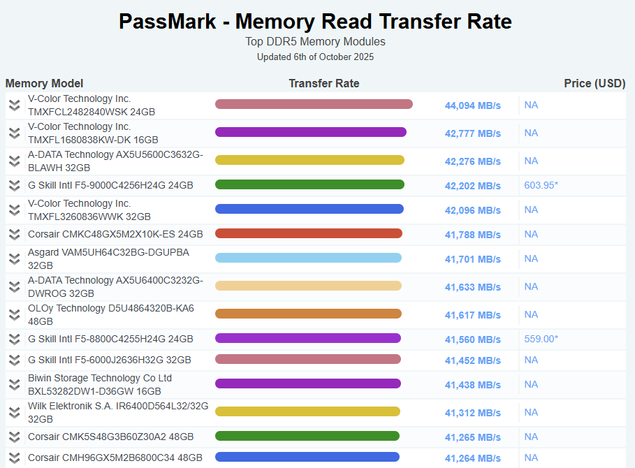 👉 Na passmark-u lahko preverite zmogljivost različnih RAM-ov (klik na link).